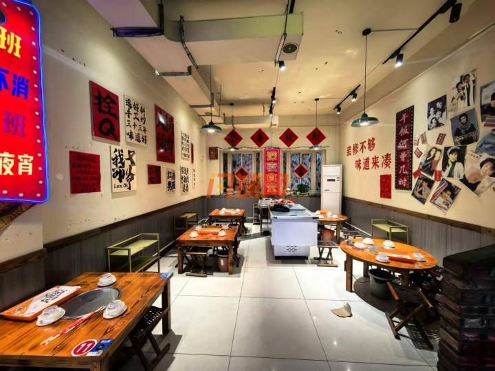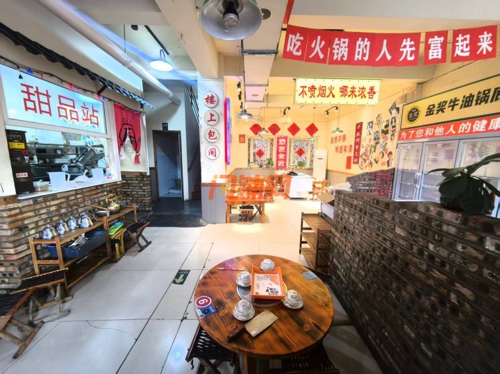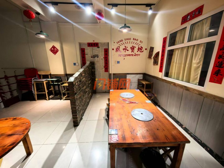 上下两层结构,门前可停车和外摆,店内布局合理,分为用餐区、厨房区等。用餐区桌椅摆放整齐,空间宽敞,能够容纳多名顾客同时就餐,厨房设施齐全,能够满足各种菜品的制作需求,减少了新经营者重新购置设备的成本。
